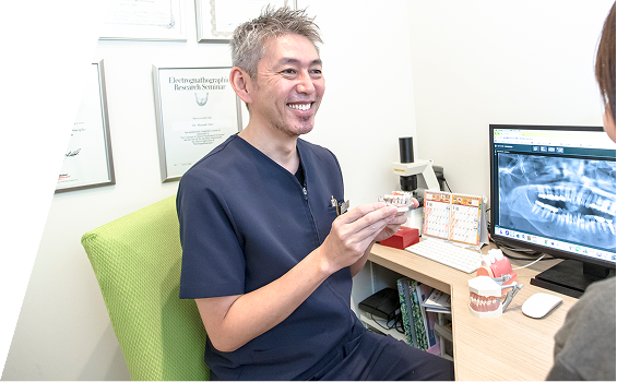不安の多い治療だからこそ、当院は説明を重視しています。メリットだけでなく、デメリット・リスク・代替治療(入れ歯/ブリッジ等)まで含めて比較し、納得できる選択をサポートします。