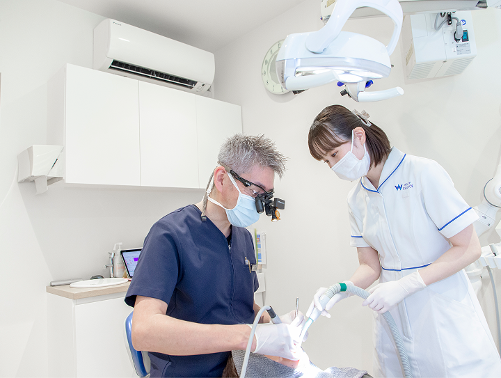 インプラントは入れて終わりではありません。当院では定期メンテナンスで、口腔内の清掃・消毒・バイオフィルム除去を行い、良い状態を保つサポートをします。